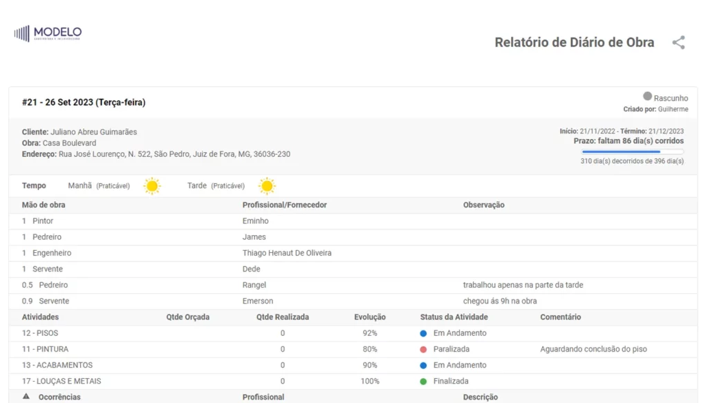Além disso, quanto mais a empresa cresce e faz várias obras ao mesmo tempo, mais a gestão fica difícil se continuar com processos manuais ou com controle informal.